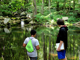 Students were excited to see two Eastern Box Turtles on the trail. This one immediately went into its shell when confronted with that many seventh graders. We learned a little about how the turtle's population has dropped mainly due to habitat loss.